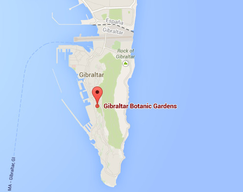 In the midst of the Alameda Botanic Gardens at Red Sands Road, Gibraltar. The main entrance is right next to the cable car.